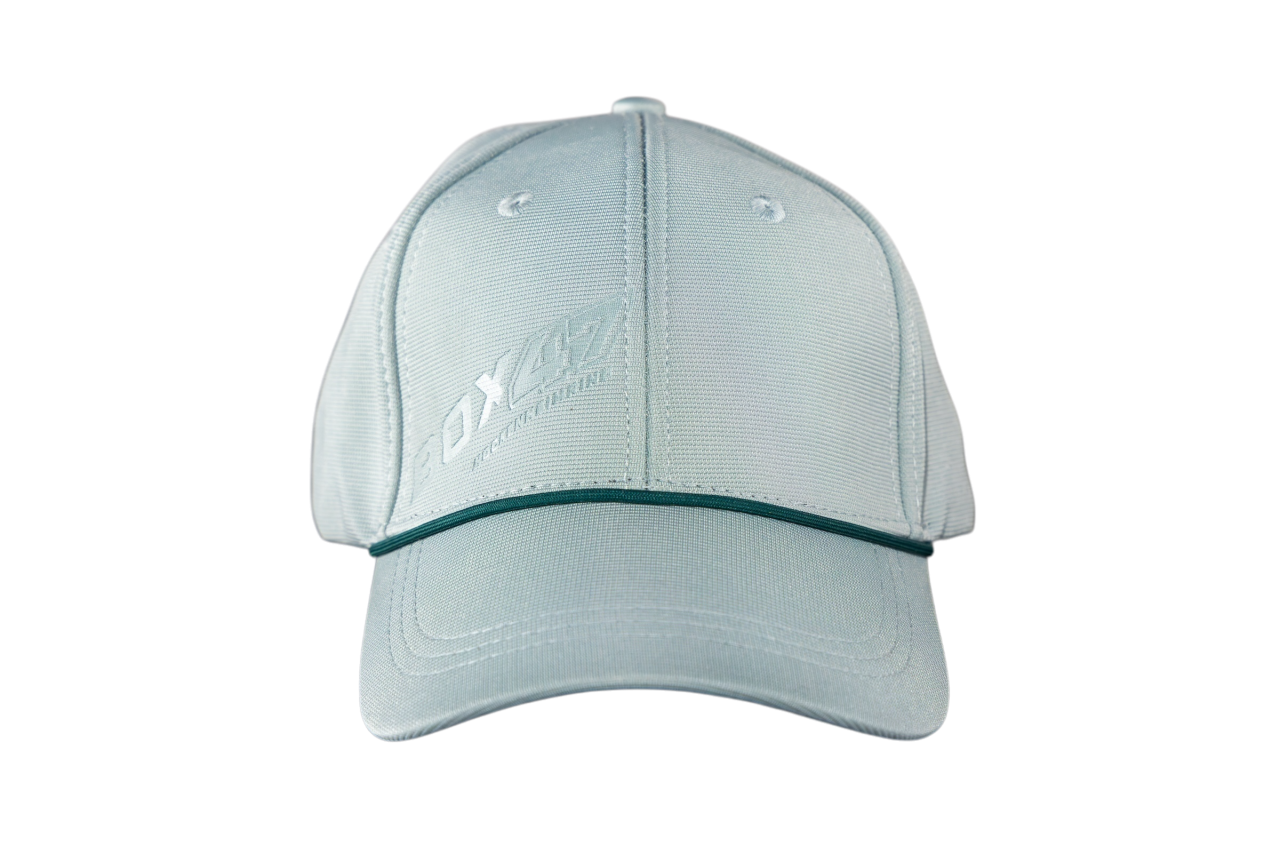 – Sage green cap with Box 47 tone-on-tone embossing